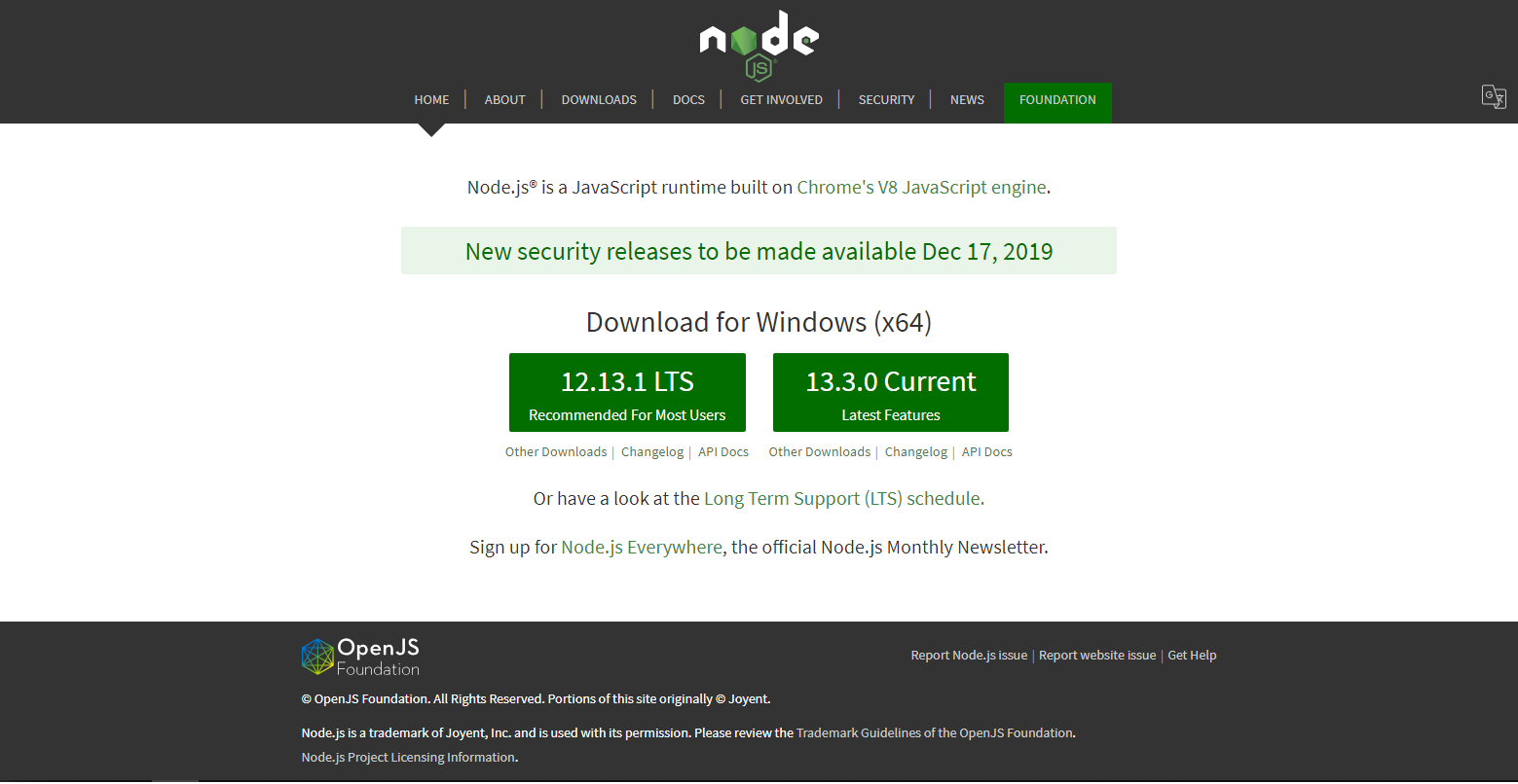 node.js的下载可以去 https://nodejs.org 官网上去下